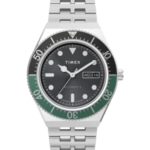Influenced by the purpose-built timepieces of the mid-twentieth century, the dive-inspired Waterbury Dive Automatic beckons to adventure on land and sea. A rotating top ring brings practicality and vintage appeal to its refined design aesthetic—a feature traditionally used to track elapsed time beneath the waves. We’ve paid homage to our original watch collection by using the iconic Waterbury Watch Company logo on the black sunray dial, crown, and sweeping second hand—which bears the stylized W—while finely finished surfaces display our attention to craftsmanship and detail. Powering this watch is a 21-jewel automatic movement that can also be hand-wound at the crown, creating a timepiece that’s packed to the gills with robustness and accuracy.